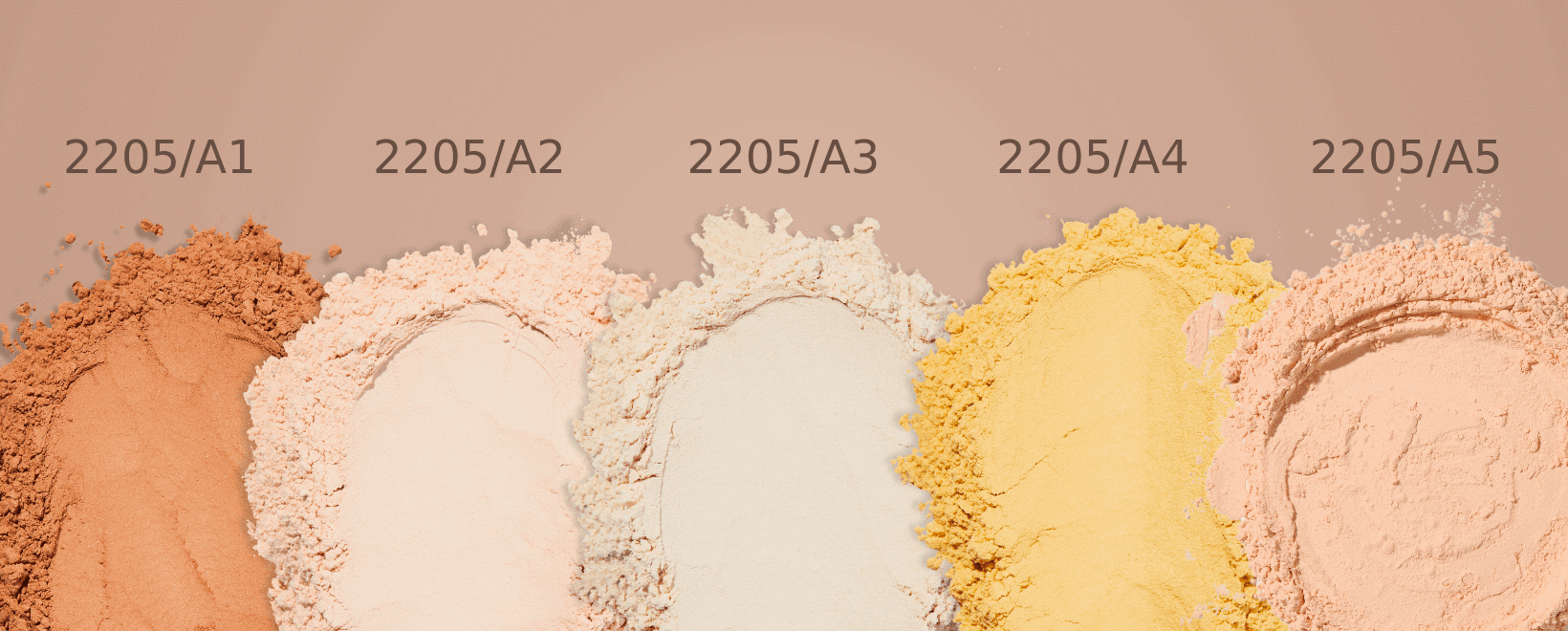 • 2205/A1: Para peles escuras quentes / amareladas (pó na cor caramelizada);