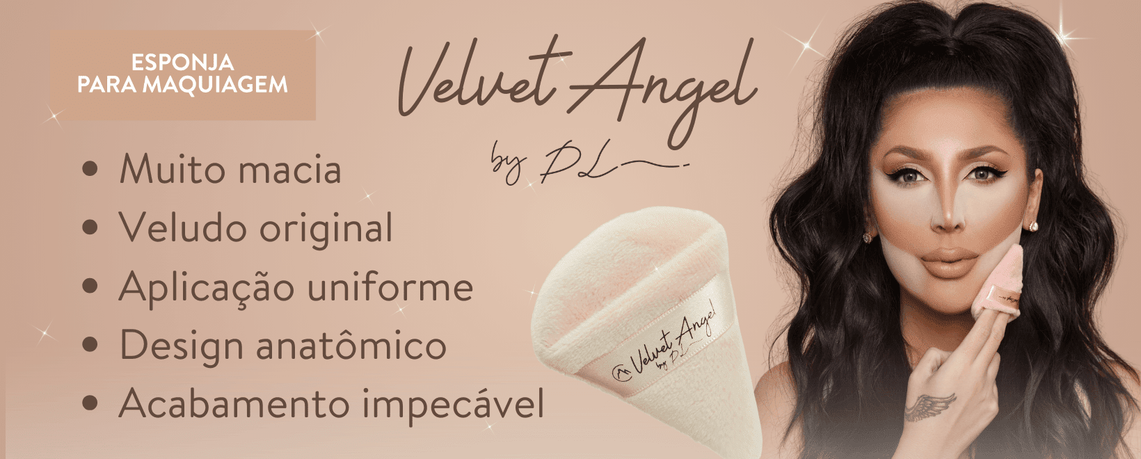 Feitas com materiais premium e pensadas para realçar a beleza natural, as esponjas Velvet Angel entregam o equilíbrio perfeito entre funcionalidade, elegância e resultado profissional, um verdadeiro toque de anjo para sua make.