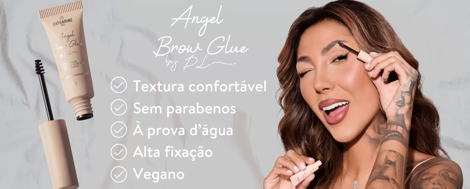 Conheça a Cola Fixadora para Sobrancelhas Angel Brow Glue by Pri Lessa da Catharine Hill: fixação de longa duração, modelagem precisa e acabamento natural.