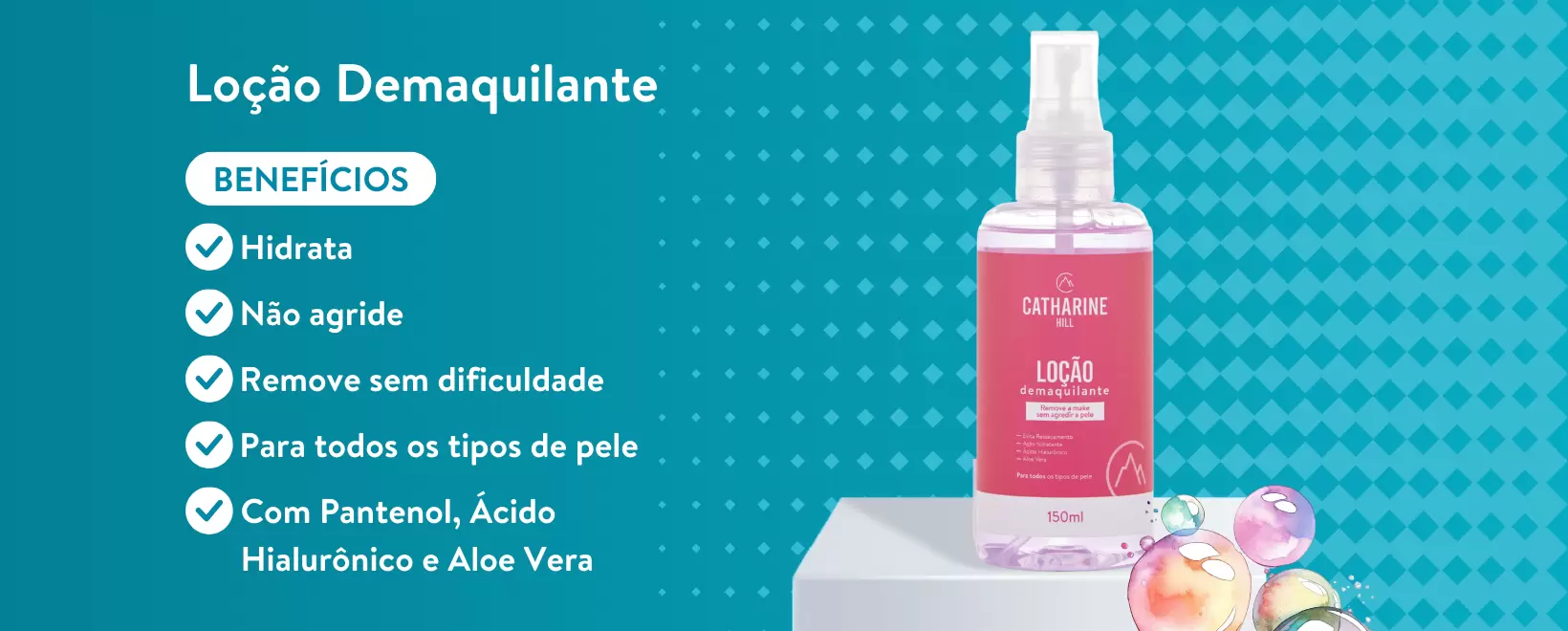 Livre de óleo e com água em sua composição, a Loção Demaquilante remove a maquiagem do dia a dia sem agredir a pele, evitando o ressecamento, preservando, diminuindo flacidez, linhas e sinais de expressão.